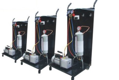 填充罐,帶英制和公制單位刻度,帶開關(guān)的減壓閥和液位指示表,真空泵,滿足各種需求,同時帶有氣鎮(zhèn)閥面板上安裝有多重填充管,并配備高壓計、復合壓力計、軟管和閥門。視鏡,可觀察制冷劑。裝有滾輪該裝置還包括清空和填充系統(tǒng)。標準附件,提供打印的操作說明。