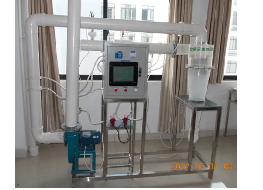 旋風(fēng)除塵器系利用含塵氣體的流動(dòng)速度,使氣流在除塵裝置內(nèi)沿某一定方向作連續(xù)旋轉(zhuǎn)運(yùn)動(dòng),粒子在隨氣流的旋轉(zhuǎn)中獲得離心力,導(dǎo)致粒子從氣流中分離出來(lái)。旋風(fēng)除塵器具有結(jié)構(gòu)簡(jiǎn)單、造價(jià)低、設(shè)備維護(hù)修理方便的優(yōu)點(diǎn),而且可用于高溫含塵煙氣的凈化,也可用其回收有價(jià)值的粉塵。本實(shí)驗(yàn)系統(tǒng)主要用于演示旋風(fēng)除塵過(guò)程的原理。