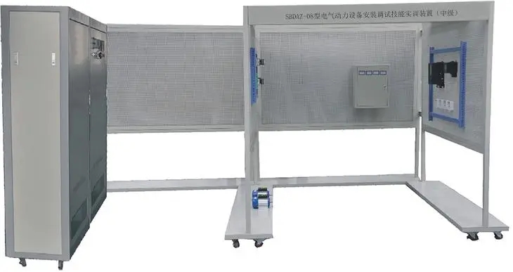 多功能配線培訓裝置柜體分為上中下三部分。柜體上部為低壓配電屏,可以進行低壓配電柜一次設備安裝配線和剩余電流保護器的安裝配線,主要部件有電壓、電流指示儀表和刀開關、按鈕開關指示燈等組成。中部為多功能網(wǎng)孔板,便于各種電氣元件的安裝,可安裝正反面網(wǎng)孔板,便于安裝儀表、動力及照明設備的安裝配線。下部可以放置電機等設備。用于培訓學員學習各種低壓設備安裝及配線工藝。