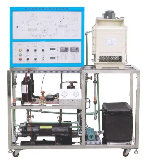 制冷機(jī)組技能實訓(xùn)設(shè)備是應(yīng)用在中央空調(diào)或大功率的制冷設(shè)備。它采用半封閉式壓液機(jī)組,冷凝器設(shè)備采用水冷降溫方式,蒸發(fā)器采用冷凍水作為媒介傳導(dǎo)配電柜采用與機(jī)組組合的方式。在配電柜可以清晰的反映出,電壓電源值,數(shù)顯溫控儀可以實時的反映各個檢測點的溫度,壓力表可以真實的反映出當(dāng)前高低壓系統(tǒng)的壓力數(shù)值,電氣系統(tǒng)采用邏輯控制功能,可以有步驟的控制各個系統(tǒng)的正常工作。
