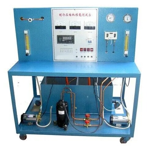 “制冷壓縮機性能測試實訓(xùn)裝置”,配備全封閉式制冷壓縮機、冷凝器、蒸發(fā)器等制冷系統(tǒng)真實部件,并設(shè)有智能溫度調(diào)節(jié)儀、流量計、壓力表、電壓表、電流表等測量儀表。不但能開設(shè)制冷壓縮機性能參數(shù)的測定實訓(xùn),還能進行制冷循環(huán)基本原理的演示實訓(xùn)。適用于職業(yè)院校制冷專業(yè)相關(guān)課程的教學(xué)實訓(xùn)。